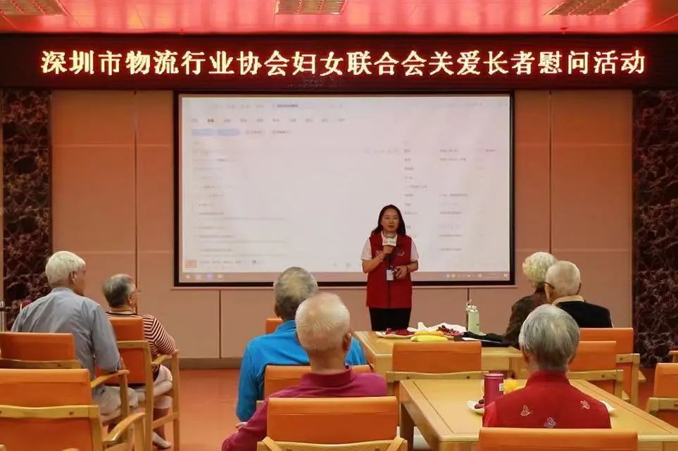 活动开始,妇联主席葛蕾代表深圳市物流行业协会妇女联合会向现场的爷爷奶奶送上亲切的问候和衷心的祝福,祝愿老人们身体健康、幸福长伴。