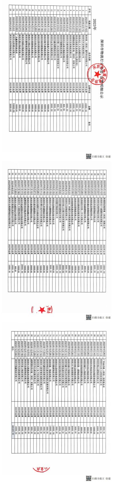 物流协会会费明细公示2023年